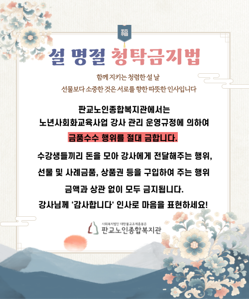 행복한 판교노인종합복지관을 만들어 나가겠습니다.